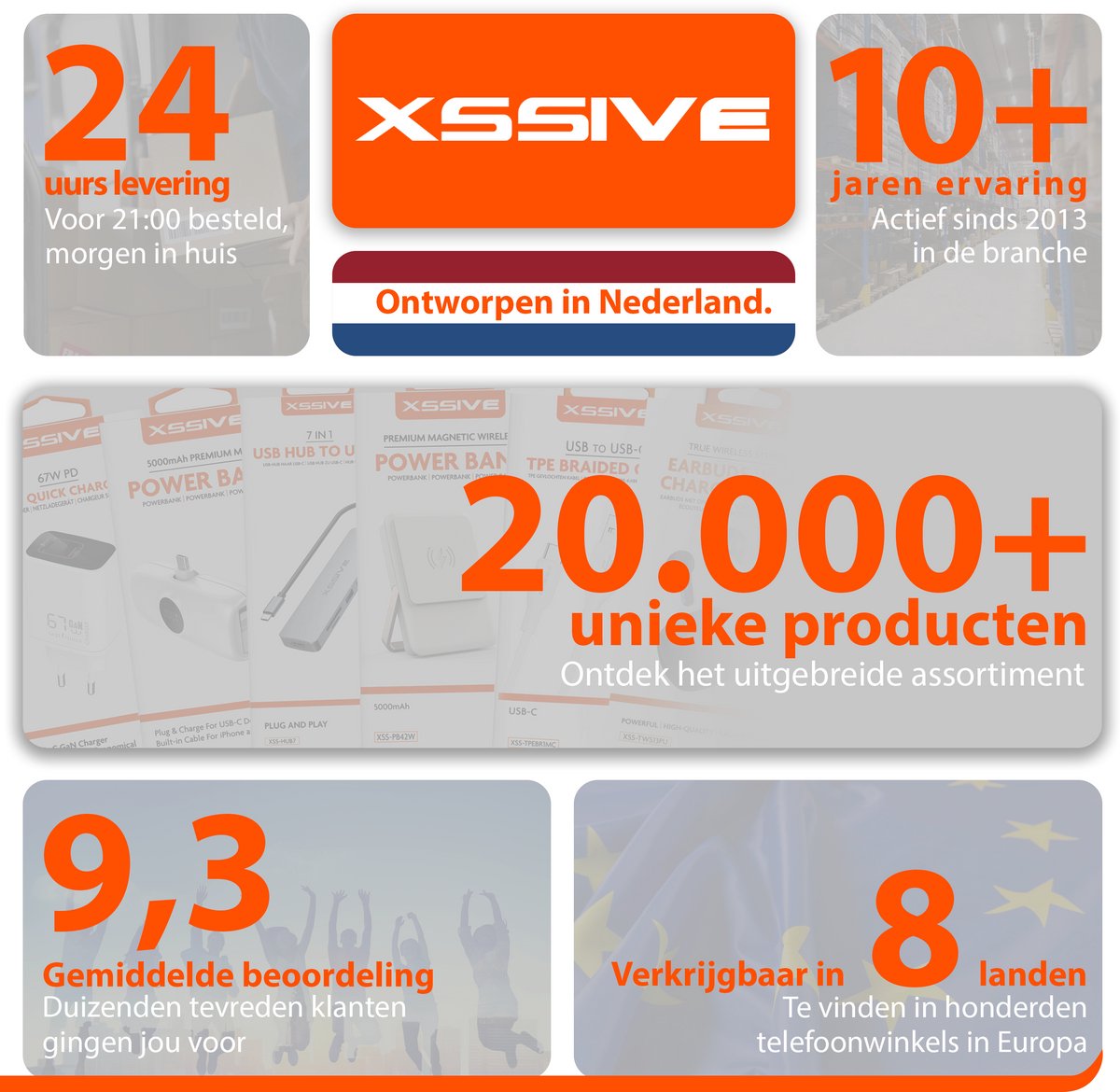 Met meer dan 20.000 betrouwbare producten en ontwerp in Nederland, staan wij garant voor kwaliteit en innovatie. Sinds 2013 ontwikkelden wij hoogwaardige elektronische accessoires, inmiddels verkrijgbaar in acht landen in Europa. Onze producten worden met oog voor detail ontworpen en bieden dure kwaliteit voor een betaalbare prijs.