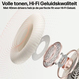 Bluetooth 5.3 zorgt voor een stabiele, energiezuinige verbinding en een bereik tot 15 m. Koppel twee apparaten tegelijkertijd met multipoint-pairing, gebruik NFC voor snelle pairing en kies indien gewenst de 3,5 mm kabelverbinding. Bedien muziek en gesprekken gemakkelijk via de multifunctionele knop of beheer uitgebreide instellingen via de gratis mobiele app (Android, iOS, iPadOS, Windows).