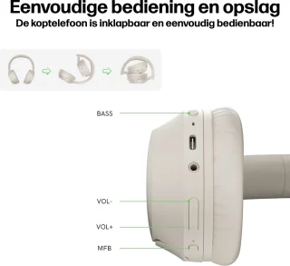 Maak je audio compleet: bestel de Phreeze Over-Ear Draadloze Koptelefoon in Creamy White en geniet van urenlang comfort, krachtige bass en perfecte verbinding — waar je ook bent.